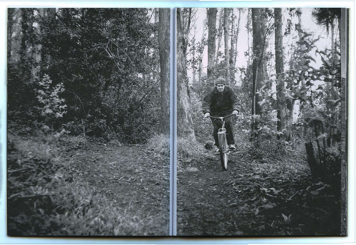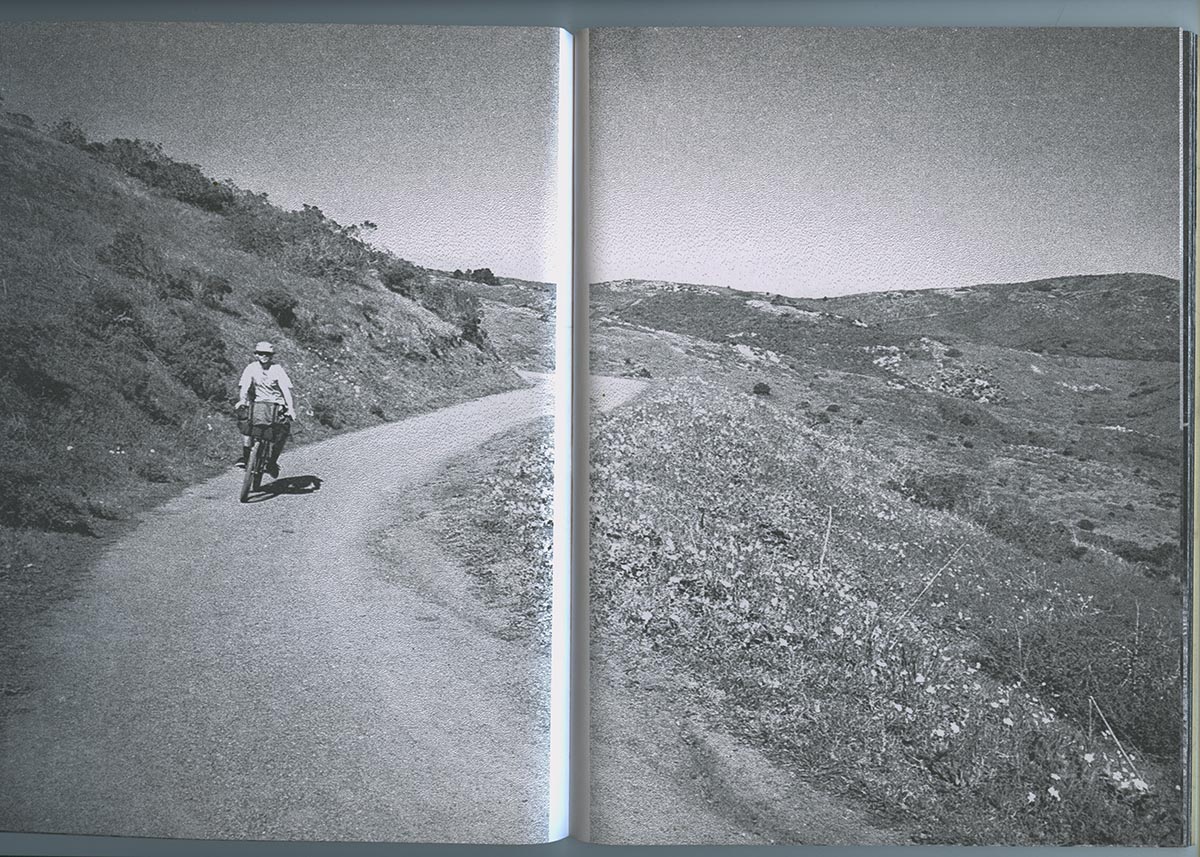 Drivetrain is a one color Riso zine published in 2022. The book documents a modern take on 90's style mountain biking across the San Francisco Bay Area. The book is 32 pages, all printed with Risograph and complete with a cover clearcoated by hand. All printing and binding done at Max's Garage Press.