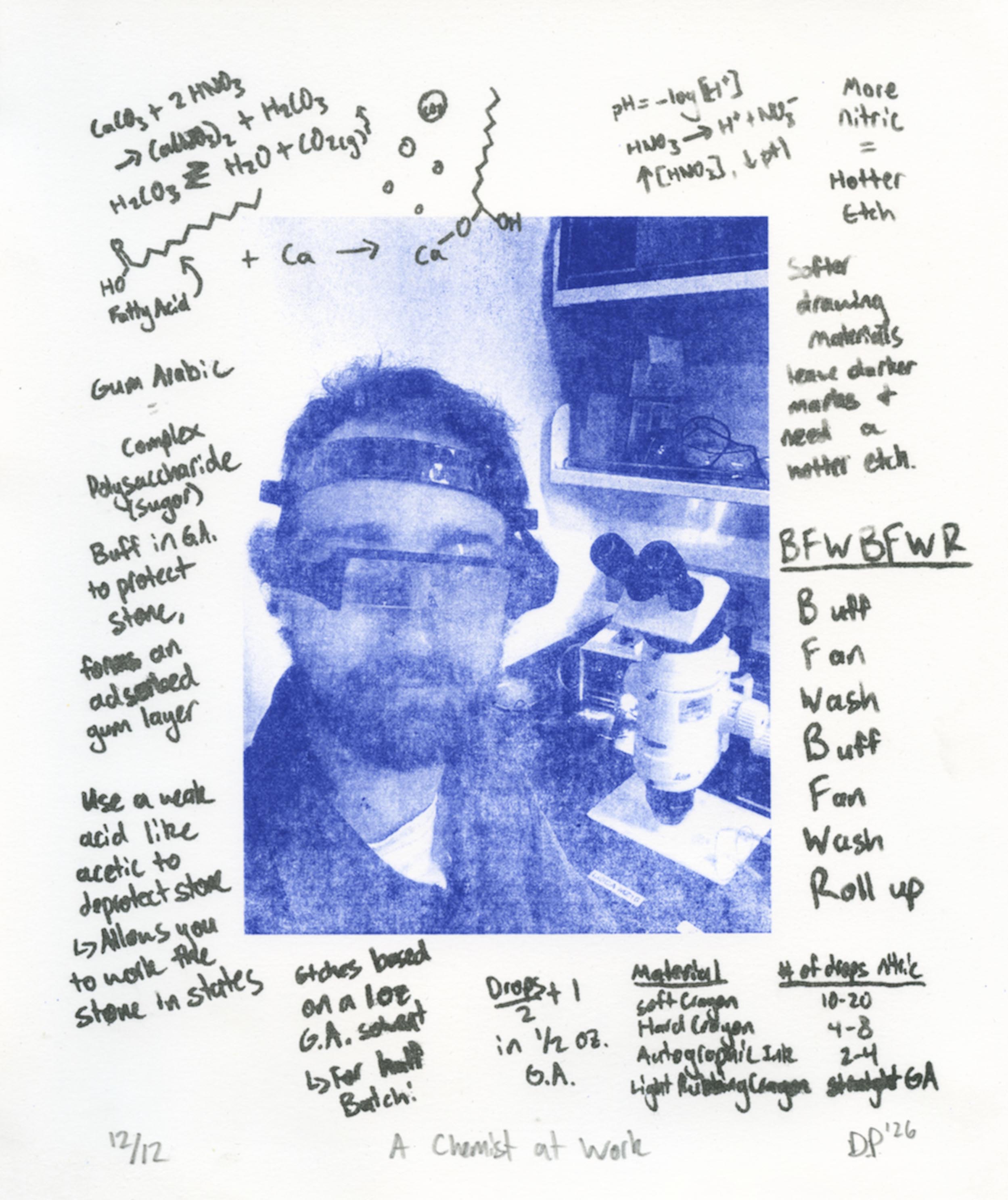 Lithography is a traditional printmaking technique that relies on the hydrophilic and hydrophobic properties of materials on the surface of a block of limestone to control the deposition of ink. Originally invented in 1796, lithography was incredibly commercial in nature, being used for everything from marketing materials to letterheads, deeds, and checks. Eventually displaced by plate lithography and later digital printing, the art of stone lithography is a dying art kept alive today by a few ardent practitioners. While less known to public audiences, the range of drawing materials, ability to work in states, and the combination of additive and subtractive markings make lithography incredibly flexible for a wide range of styles and subject matter.
